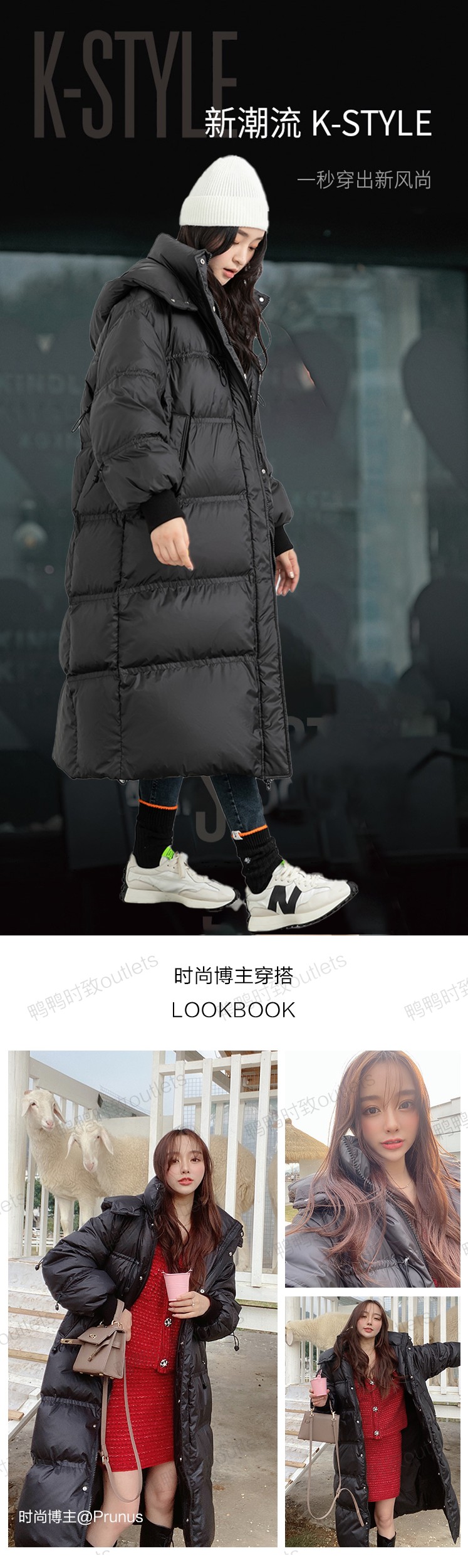 - 商品名称:明星黑色韩版过膝羽绒服女长款宽松加厚轻奢冬装连帽外套