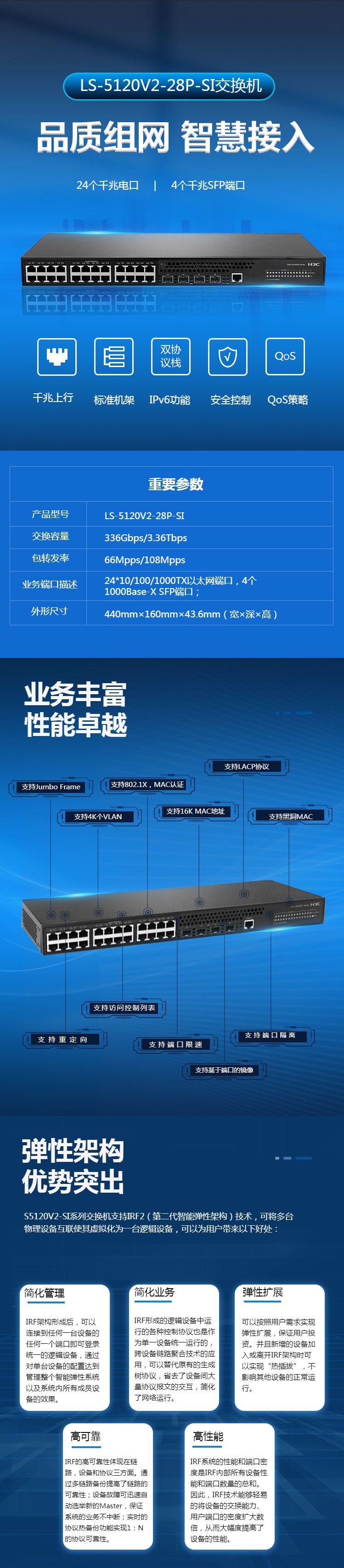 商品名称:华三(H3C)LS-5120V2-28 交换机 24个千兆电口 4个千兆SFP端口 智能型可网管 商品编号:100226 品牌:华三 上架时间:2021-06-18 商品毛重:0克