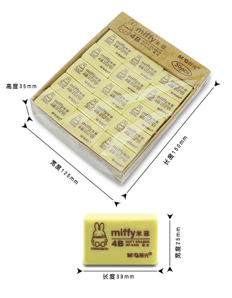 商品名称:晨光(M&G)4B橡皮擦 学生美术绘图考试橡皮擦 米菲系列 30块/盒 2盒装 MF6306 商品编号:100011551942 品牌:晨光/M&G 上架时间: 商品毛重:0克