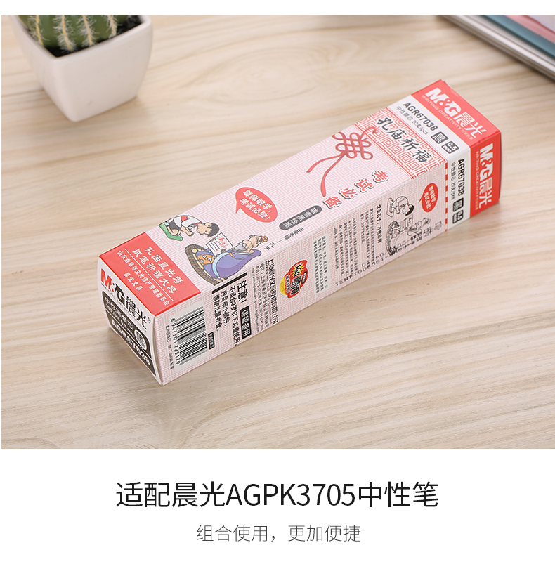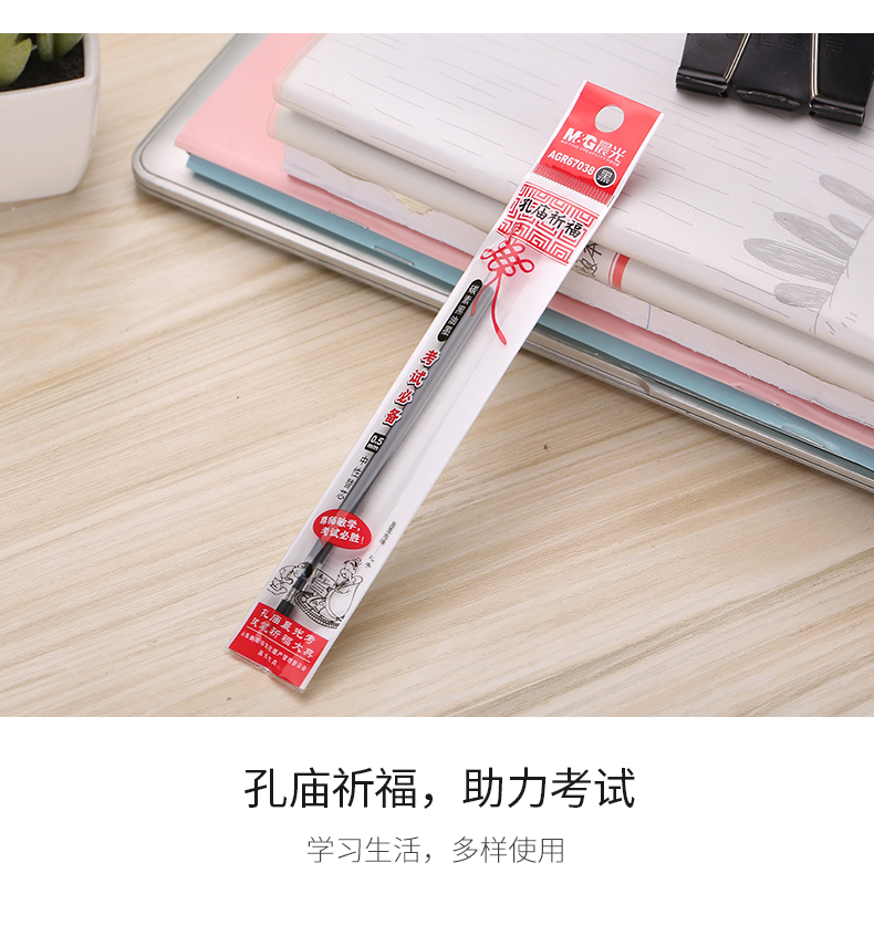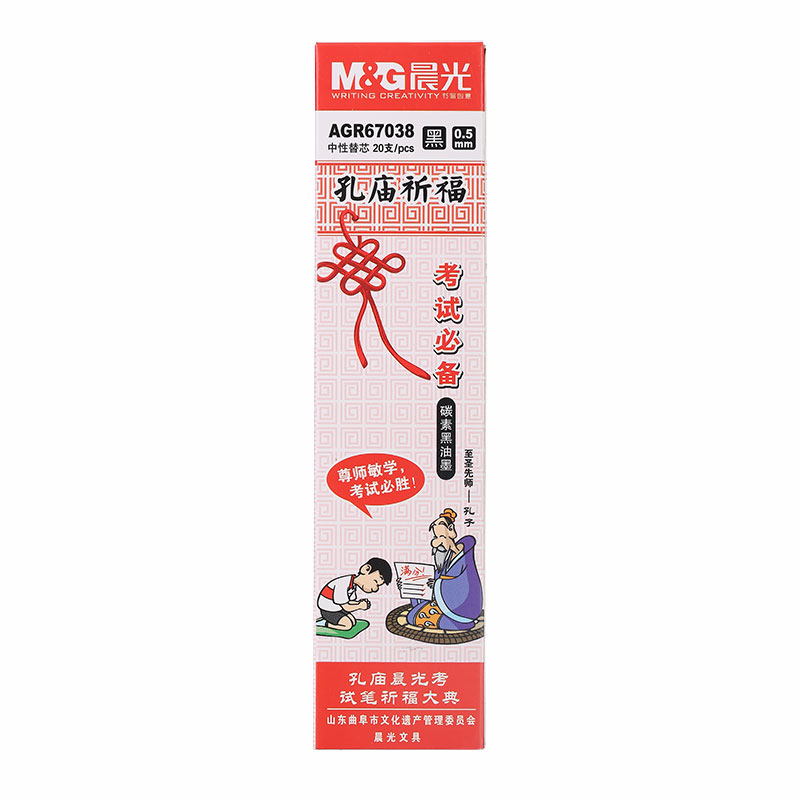 商品名称:晨光(M&G)文具0.5mm黑色中性笔芯 子弹头签字笔替芯 孔庙祈福系列学生考试水笔芯 20支/盒AGR67038 商品编号:100005859000 品牌:晨光/M&G 上架时间: 商品毛重:60克