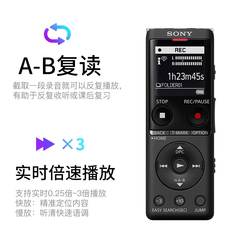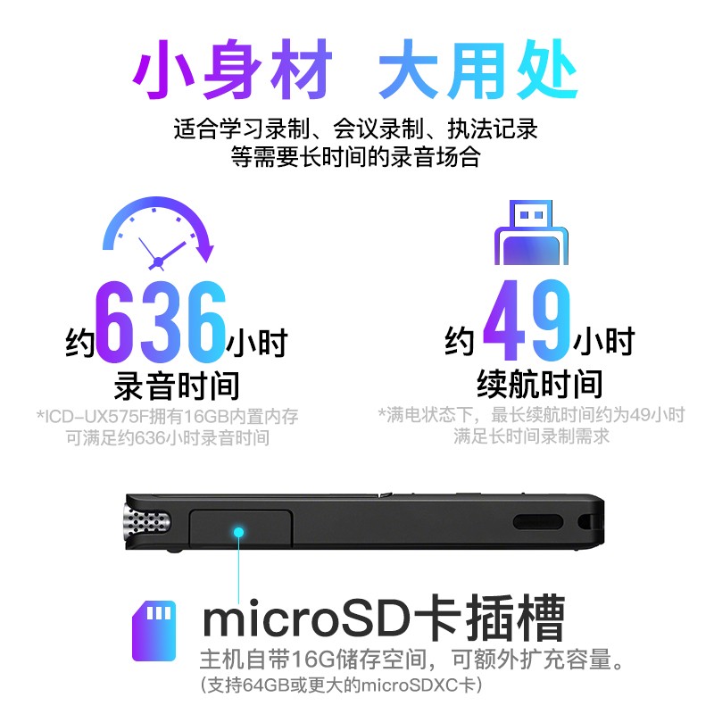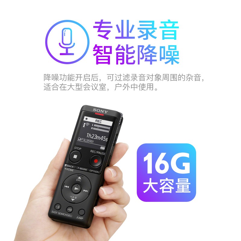 > 数码产品、充电器、电池 > 时尚影音 > 录音笔 > 索尼(SONY) ICD-UX575F录音笔16GB大容量智能降噪升级 商务学习专业线性录音棒赠转写 黑色 16GB大容量 VOR音控录音