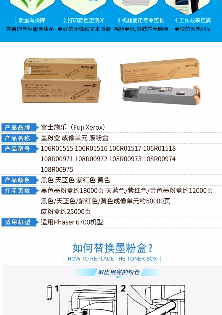 商品名称:富士施乐(Fuji Xerox)106R01518 原装黑色粉盒 (适用Phaser 6700机型) 约18000页 商品编号:100005222496 品牌:富士施乐/FujiXerox 上架时间: 商品毛重:0克