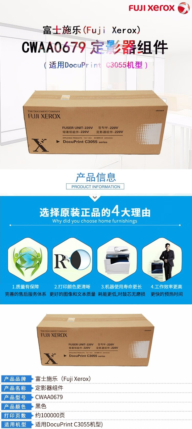 商品名称:富士施乐(Fuji Xerox)CWAA0679 原装定影器组件 (适用DocuPrint C3055机型) 约100000页 商品编号:100003204731 品牌:富士施乐/FujiXerox 上架时间: 商品毛重:0克