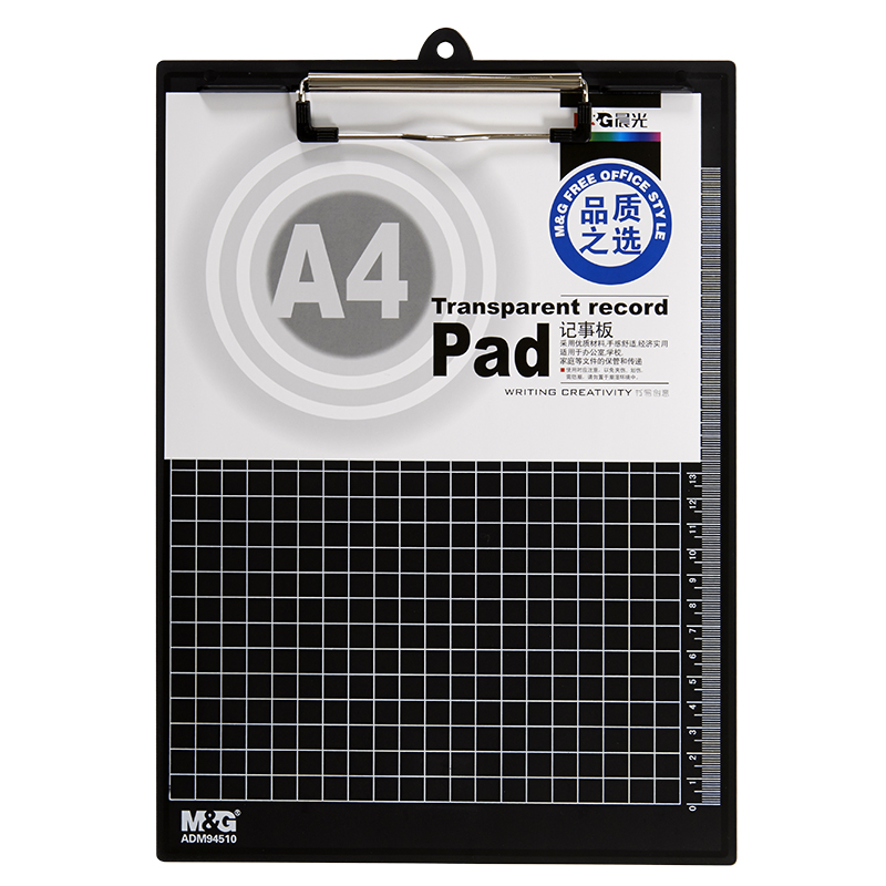 商品名称:晨光(M&G)文具A4便携竖式书写板夹 记事夹文件夹垫板(带格子刻度尺) 单个装颜色随机ADM94510 商品编号:1876440 品牌:晨光/M&G 上架时间: 商品毛重:0克