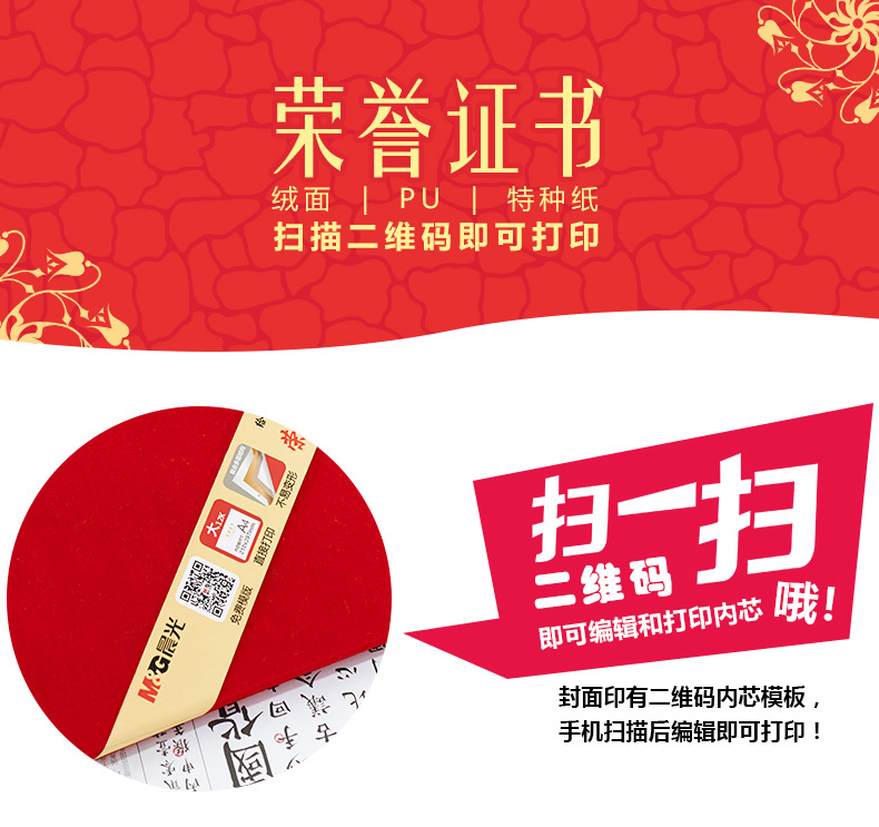 商品名称:晨光(M&G)荣誉证书绒面 聘书 PU皮面 特种纸封面 50张6K证书内芯ASC99325 商品编号:11060463143 品牌:晨光/M&G 上架时间: 商品毛重:0克