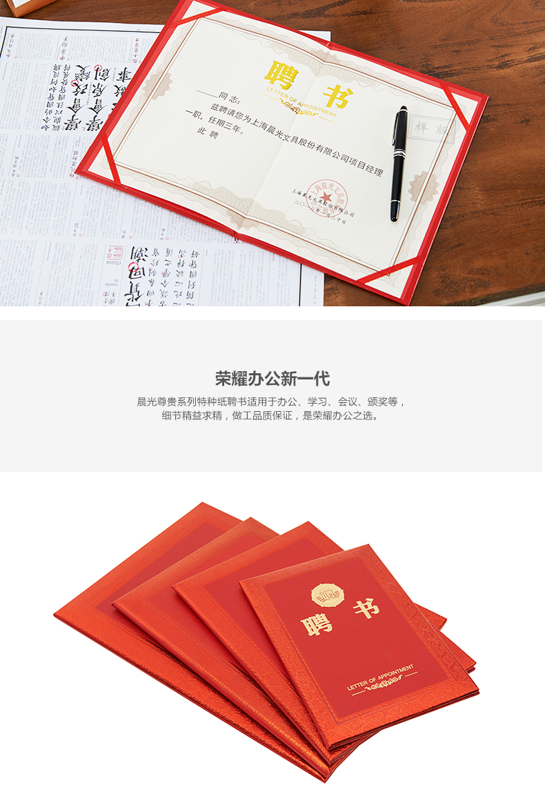 商品名称:晨光(M&G)ASC99319尊贵特种纸12K聘书(含内芯纸 ) 5本装 商品编号:100016724192 品牌:晨光/M&G 上架时间: 商品毛重:0克