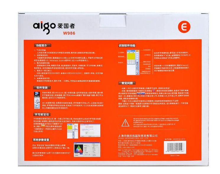 商品名称:爱国者 W986手写板有驱大板 商品编号:101572 品牌: 上架时间:2021-09-08 商品毛重:0克