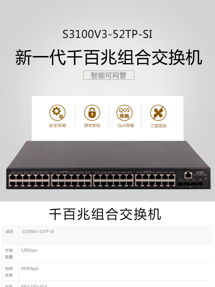 商品名称:华三(H3C)LS-3100V3-52TP-SI 网络交换机 商品编号:101638 品牌:华三 上架时间:2021-09-09 商品毛重:0克