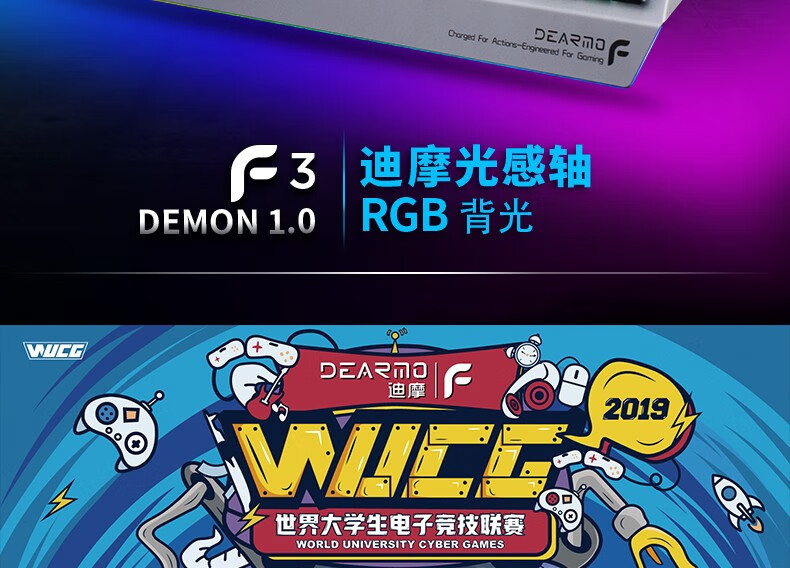 商品名称:迪摩(DEARMO)F3电竞机械键盘光轴 金属RGB背光全键无冲 F3 光轴 商品编号:10041896334397 品牌:迪摩 上架时间: 商品毛重:1.360千克