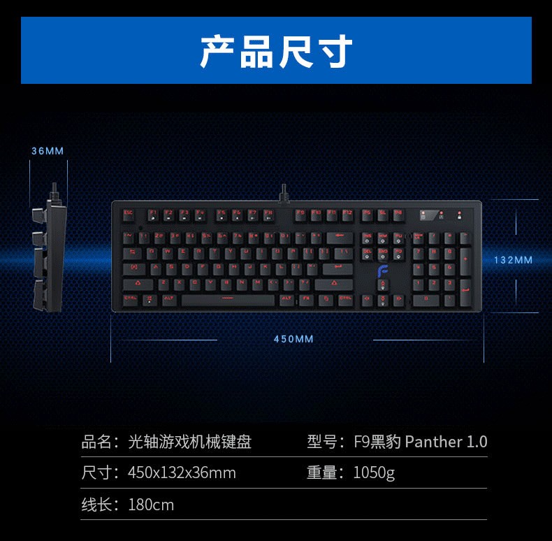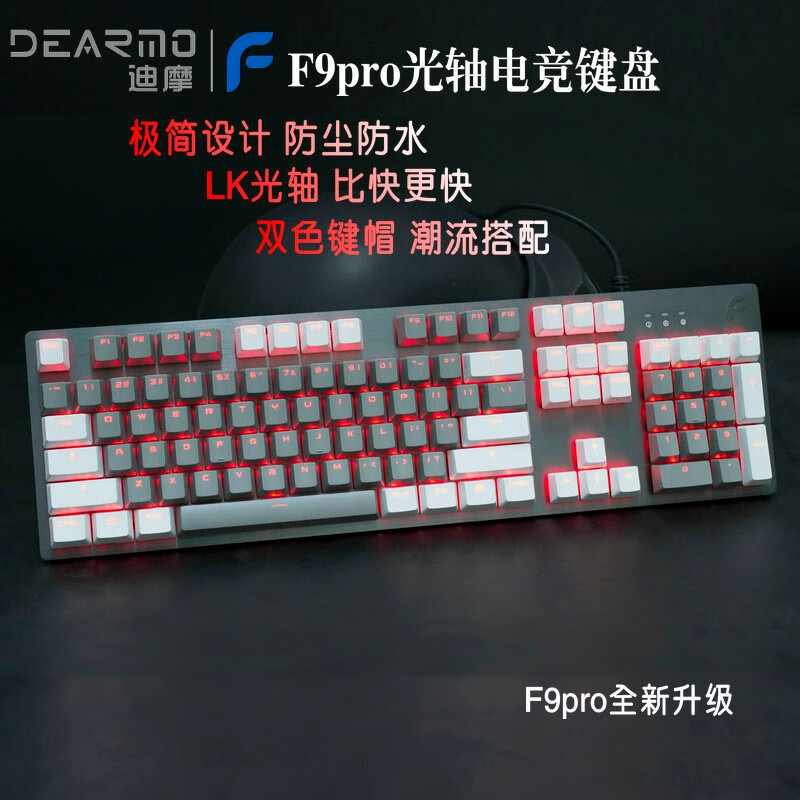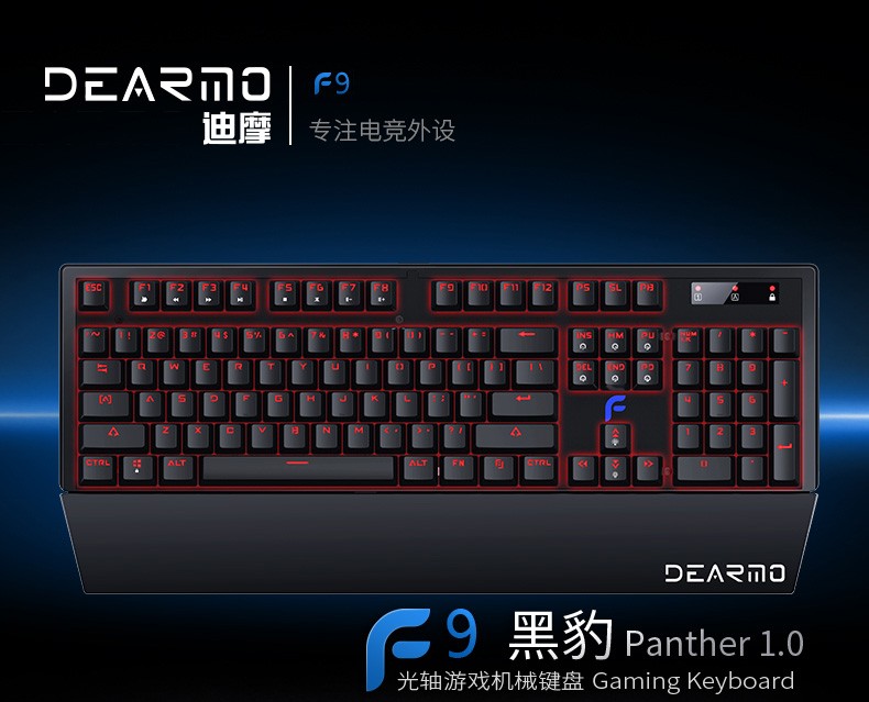 商品名称:迪摩(DEARMO)F9PRO黑豹有线光轴机械键盘 (吃鸡游戏 绝地求生LOL 防水网咖键鼠套装) 迪摩F9PRO机械键盘 商品编号:48554302861 品牌:迪摩 上架时间: 商品毛重:1030.000千克