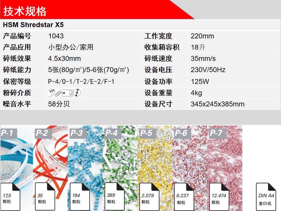 商品名称:赫斯密(HSM)shredstar X5小型家用和办公碎纸机德国4级保密可碎光盘 shredstarX5碎纸机(碎光盘颗粒) 商品编号:100007186167 品牌:赫斯密/HSM 上架时间: 商品毛重:4.000千克