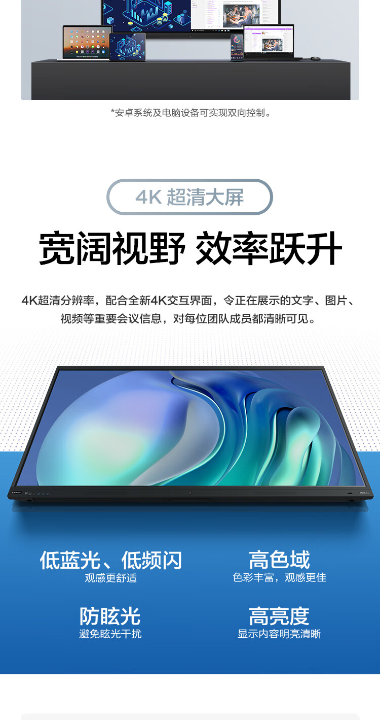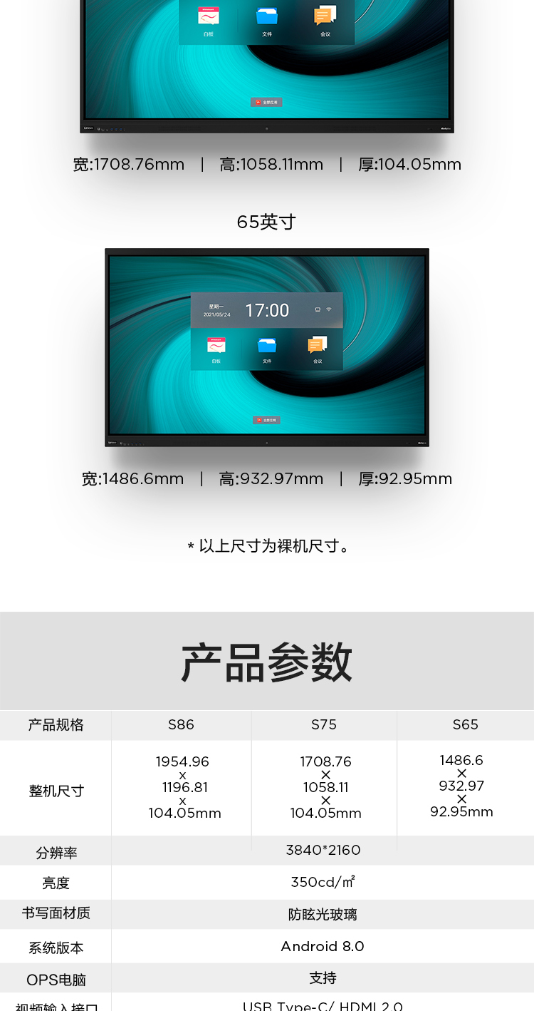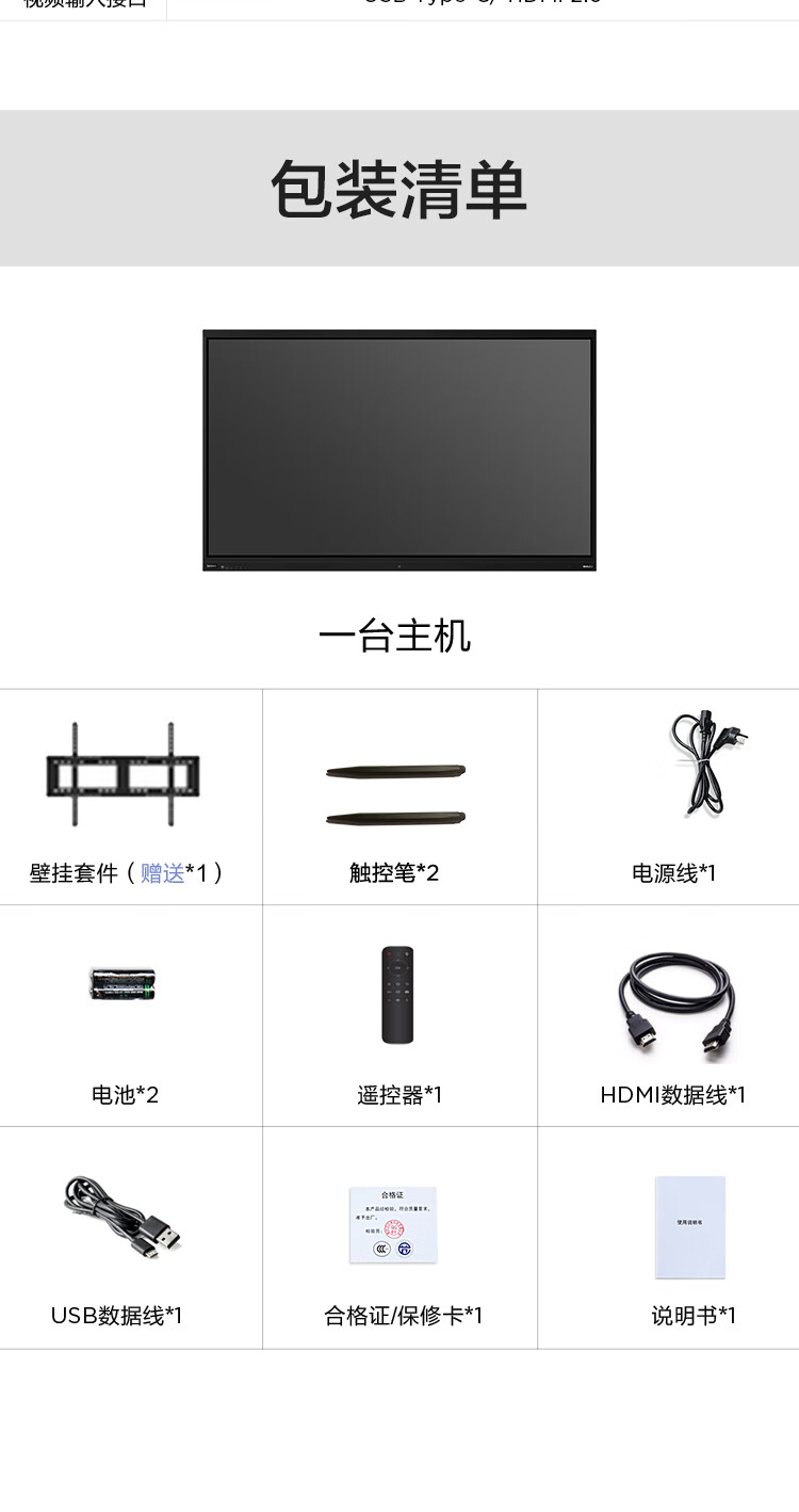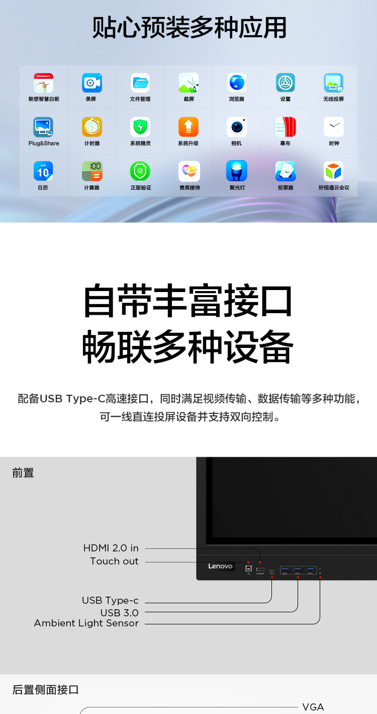 商品名称:联想thinkplus会议平板一体机65英寸电子白板教学大屏电视智慧投屏触摸(S65+壁挂支架) 商品编号:100016582995 品牌:联想/LENOVO 上架时间: 商品毛重:0克