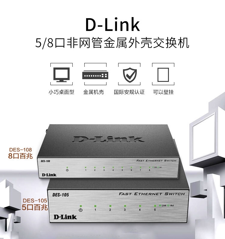 商品名称:友讯(D-Link)dlink DES-105 百兆 交换机5口 商品编号:1666479 品牌:友讯 上架时间: 商品毛重:260.000千克