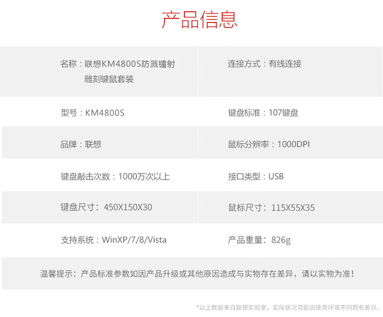 商品名称:联想(lenovo)有线键盘鼠标套装 键盘 键鼠套装 办公鼠标键盘套装 KM4800S键盘 电脑键盘笔记本键盘 商品编号:1135833 品牌:联想/LENOVO 上架时间: 商品毛重:714.000千克