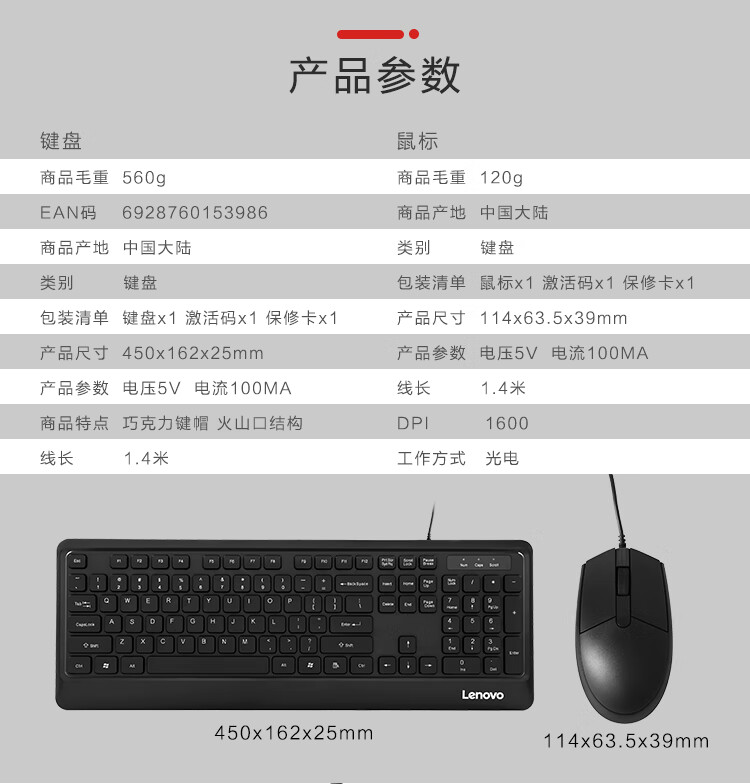 商品名称:联想(Lenovo)键鼠套装 键盘鼠标套装 办公键鼠套装 电脑笔记本键盘 全尺寸 KM102 轻薄有线键鼠套装 商品编号:55194904758 品牌:联想/LENOVO 上架时间: 商品毛重:0克