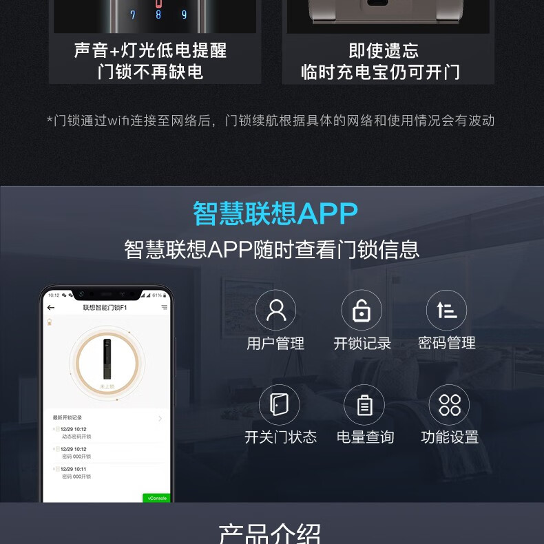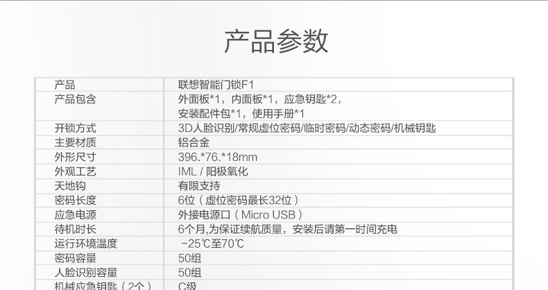 商品名称:联想Lenovo指纹锁智能家用防盗门锁密码电子锁3D人脸识别WIFI联网智能锁F1 拉菲金-WIFI版 商品编号:10026872780933 品牌:联想/LENOVO 上架时间: 商品毛重:0克