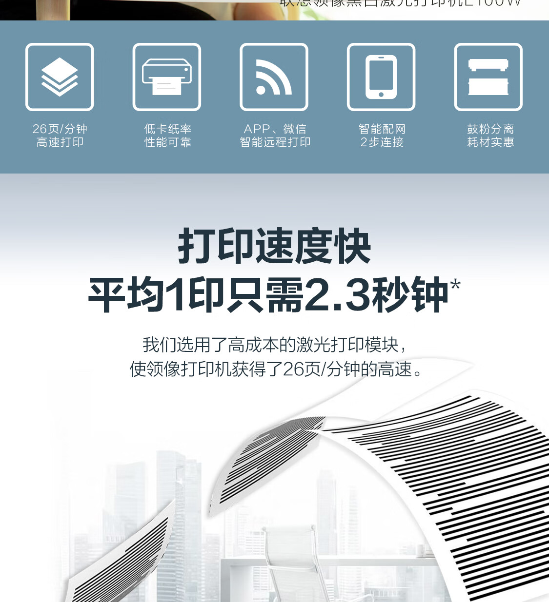 商品名称:联想(Lenovo)领像L100W 黑白激光无线WiFi打印机 办公商用家用A4打印 APP打印 商品编号:100018487735 品牌:联想/LENOVO 上架时间: 商品毛重:7.500千克