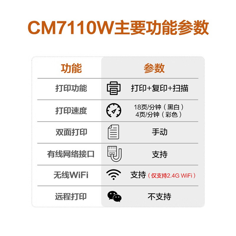 商品名称:联想(Lenovo)CM7110W 彩色激光有线网络+无线WiFi打印多功能一体机 办公商用家用彩色打印(打印 复印 扫描) 商品编号:100000624860 品牌:联想/LENOVO 上架时间: 商品毛重:12.890千克