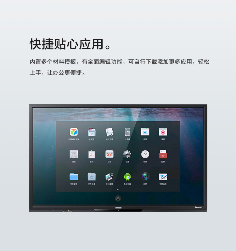 商品名称:联想THINKVISION 智慧大屏86英寸平板 视频会议 教学一体机(BM86tr-10+投屏器+壁挂支架) 商品编号:100016395827 品牌:联想/LENOVO 上架时间: 商品毛重:69.000千克