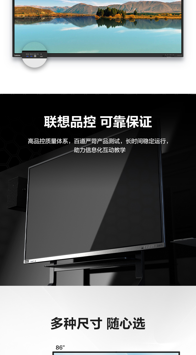 商品名称:联想(ThinkVision) 75英寸商用显示器智慧互动大屏M1 商品编号:100012532729 品牌:联想/LENOVO 上架时间: 商品毛重:0克