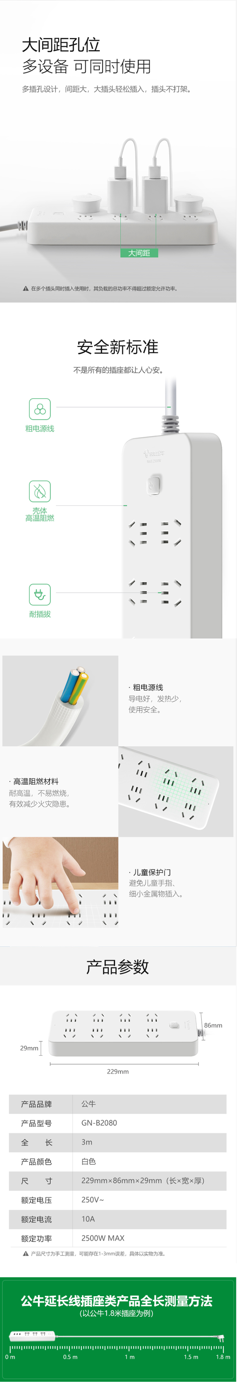 商品名称:公牛(BULL)新国标插座 插线板/插排/排插/接线板/拖线板 超功率保护 GN-B2080 8位总控全长3米 商品编号:103159 品牌:公牛/BULL 上架时间:2022-04-26 商品毛重:0克