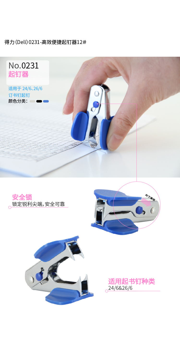- 商品名称:得力(deli)12#高效便捷起钉器拔钉器 带安全锁 黑色0231