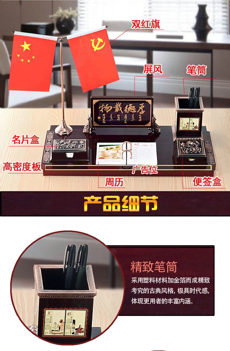 商品名称:易利丰 商务办公用品带笔筒摆件办公室国旗摆件台历架多功能木质2022日历台办公桌面红旗党旗 大号 豪华款 商品编号:103318 品牌:易利丰/elifo 上架时间:2022-06-07 商品毛重:6克