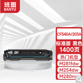 商品名称:班图CF540A 203A黑色硒鼓带芯片 适用惠普HP M254dw nw M280nw M281fdw fdn打印机粉盒 墨盒 商品编号:103402 品牌:班图/BANTU 上架时间:2022-06-15 商品毛重:0克