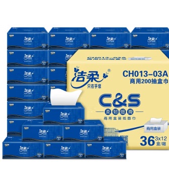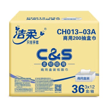 - 商品名称:洁柔盒抽纸巾(C&S) 柔韧双层200抽面巾纸*36盒装 商用硬盒抽纸