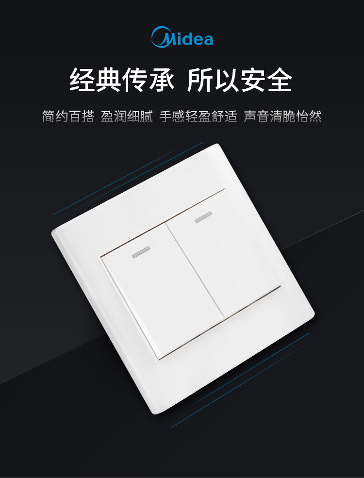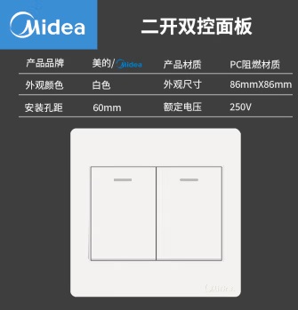 - 商品名称:美的(Midea)开关电源面板86型双开双控二位2开墙壁家用暗装雅白E03K22