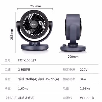 商品名称:格力(GREE) 空气循环扇台式风扇家用电风扇上下左右摇头小风扇电扇涡轮换气扇循环对流风扇 FXT-1505g3 商品编号:104033 品牌:格力/GREE 上架时间:2022-08-25 商品毛重:0克