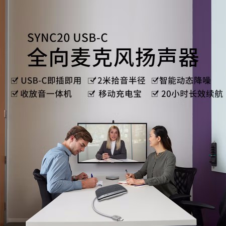 商品名称:宝利通 SYNC20 USB-C 视频会议全向麦克风 2米拾音 蓝牙免驱连接会议 适合15㎡会议室 商品编号:104596 品牌:宝利通/POLYCOM 上架时间:2022-11-28 商品毛重:1.000千克