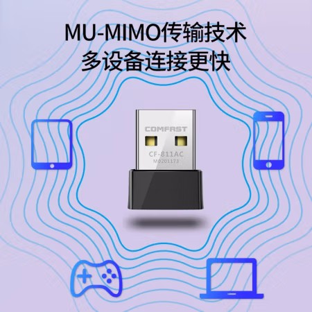 - 商品名称:COMFAST CF-811AC 650M USB无线网卡 5G双频 台式机电脑笔记本通用 迷你mini 随身WiFi接收器 发射器