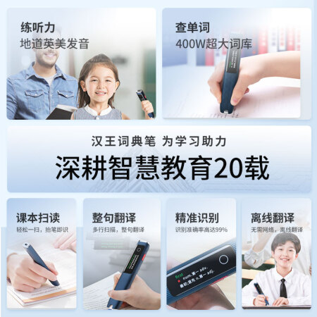 商品名称:汉王 Hanvon 翻译笔词典笔S20PLUS英语点读听读笔扫读笔中小学生电子词典 翻译机中英字词查询神器深海蓝 商品编号:105147 品牌:汉王/Hanvon 上架时间:2023-02-08 商品毛重:0克