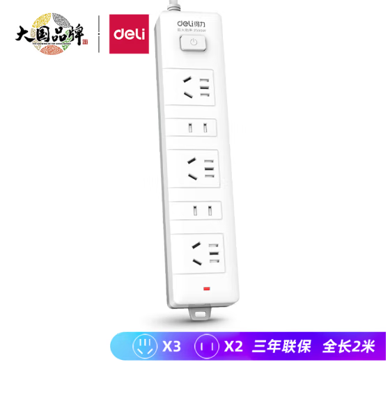 商品名称:得力(deli) 新国标安全插座 插排/插线板 18252 商品编号:106089 品牌:得力/deli 上架时间:2023-06-07 商品毛重:0克