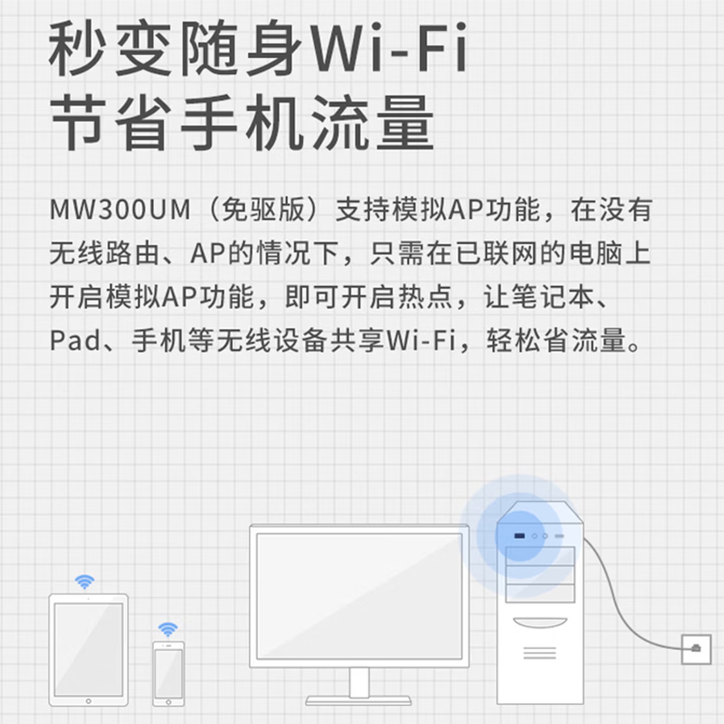商品名称:水星 MW300UM免驱版 USB无线网卡 300M台式机笔记本电脑wifi接收器发射器 商品编号:107134 品牌:水星/MERCURY 上架时间:2025-12-06 商品毛重:0克