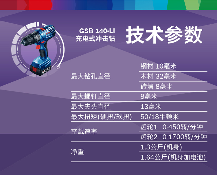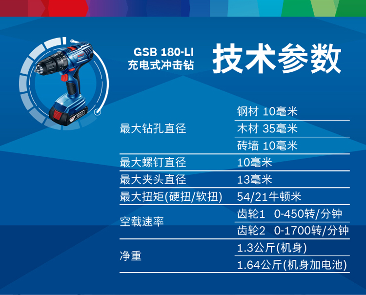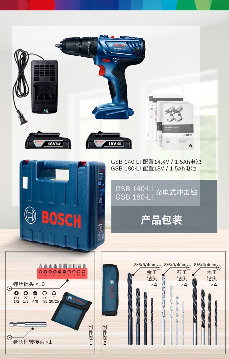 商品名称:博世(BOSCH)GSB180-LI 18V锂电冲击钻电钻起子机 商品编号:095537 品牌:博世 上架时间:2019-05-30 商品毛重:3.480千克