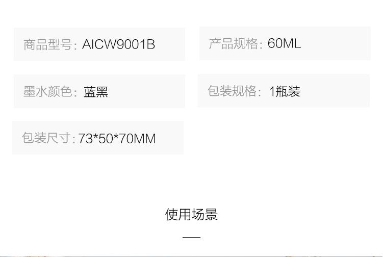 主体 型号 AICW9001 类别 墨水 颜色 蓝色 规格 包装 0.187kg