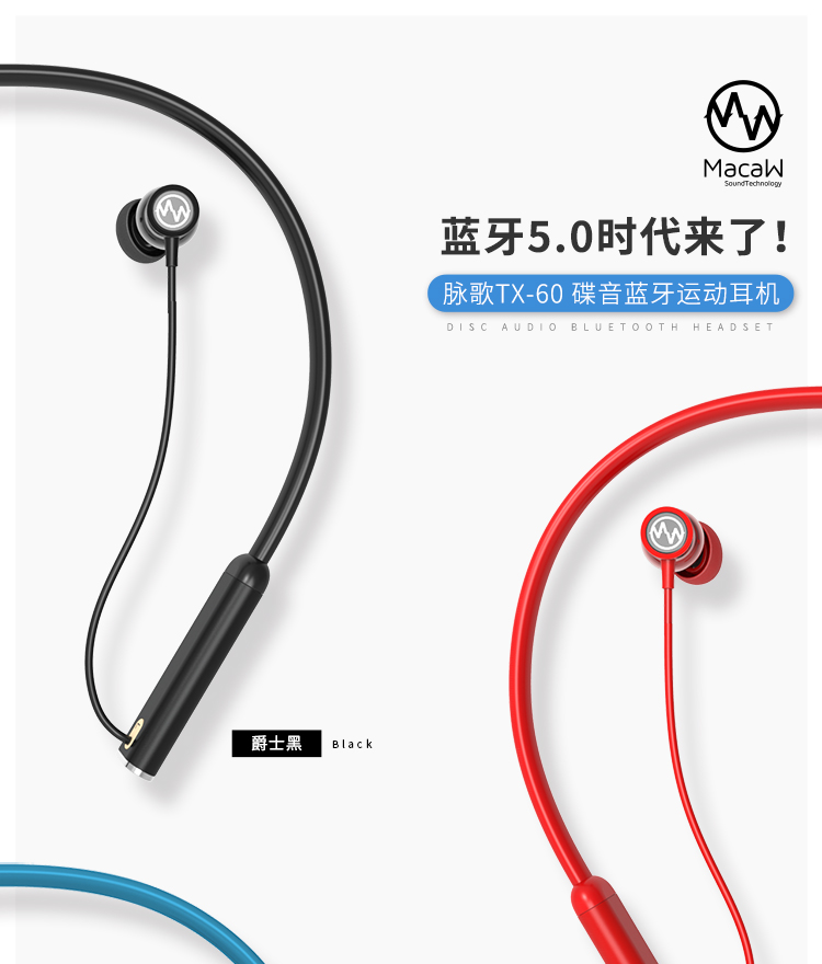 商品名称:脉歌(Macaw)TX-60 无线蓝牙耳机 磁吸入耳式 碟音运动耳机 手机耳机 游戏耳机 线控带麦 商品编号:096610 品牌:脉歌 上架时间:2019-07-22 商品毛重:295克