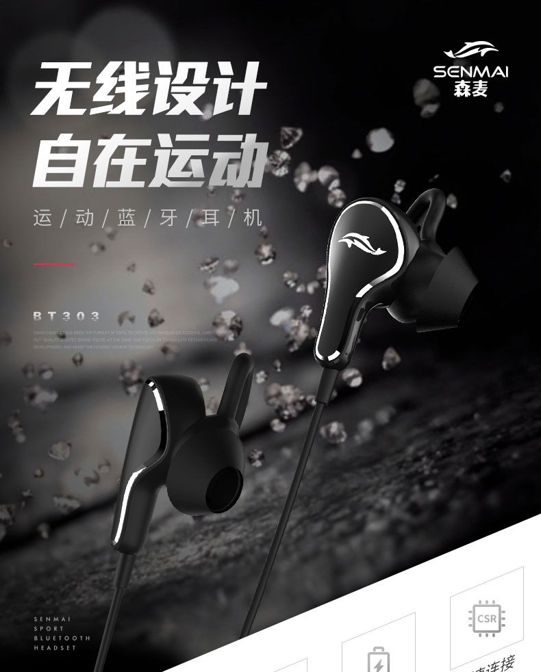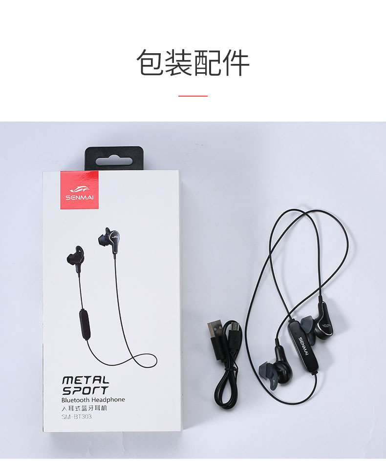 商品名称:森麦 SM-BT303 无线蓝牙耳机入耳式跑步音乐运动健身 商品编号:096611 品牌:森麦 上架时间:2019-07-22 商品毛重:280克
