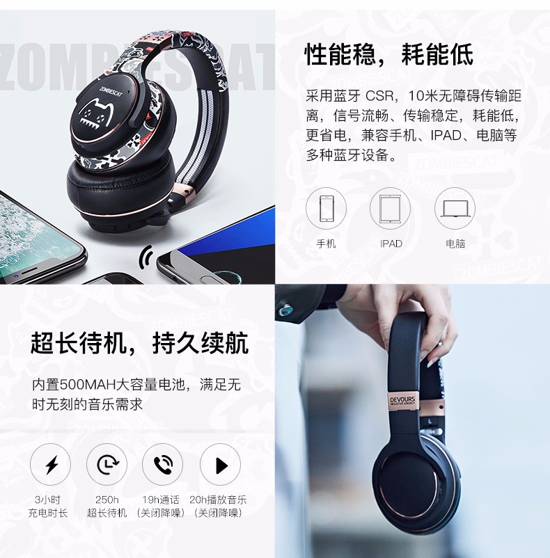 商品名称: 森麦(Senmai) 魔鬼猫音魔蓝牙头戴式耳机 主动降噪隔音无线耳麦通用苹果索尼安卓手机电脑男女生 商品编号:096614 品牌:森麦 上架时间:2019-07-23 商品毛重:1.000千克