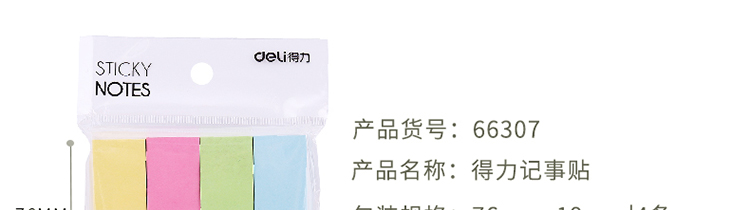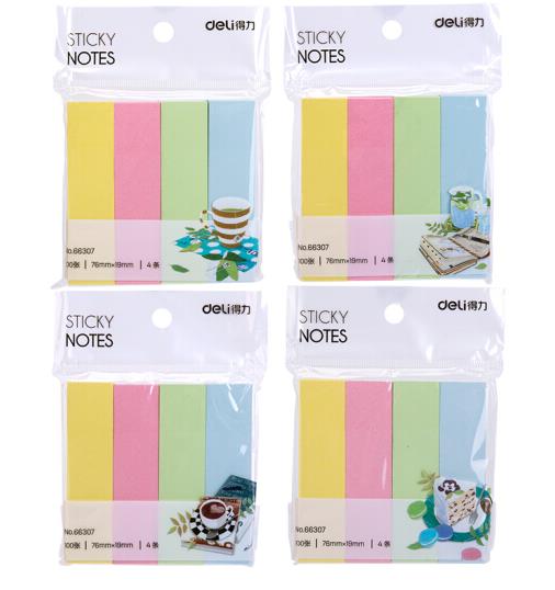 - 商品名称:得力(deli)100张4色分条便利贴便签纸 76*19mm记事贴N次贴66307