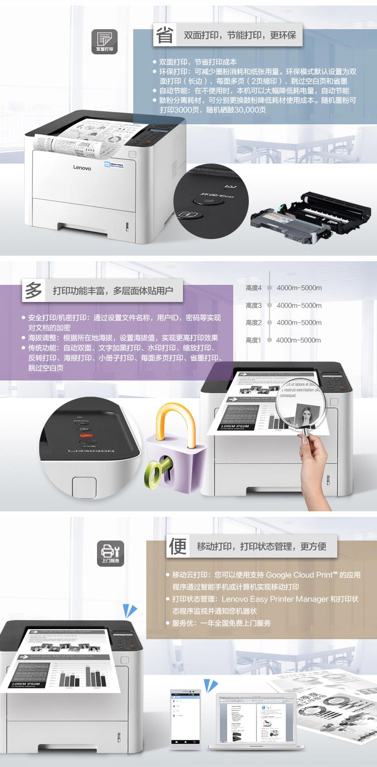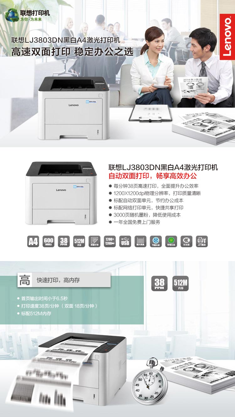 - 商品名称:联想LJ3803DN A4单打印/38页/带双面/有线网络/鼓粉分离/硒鼓型号LD333 30000页,粉盒型号:LT333 3000页