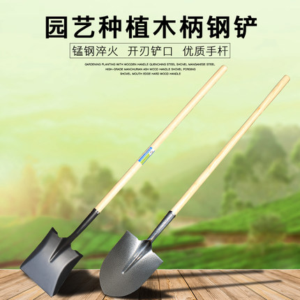 - 商品名称:木柄方头铁锹 铁铲铲子种树植树大铲雪铲农用种植松土铲(方头铁锨)