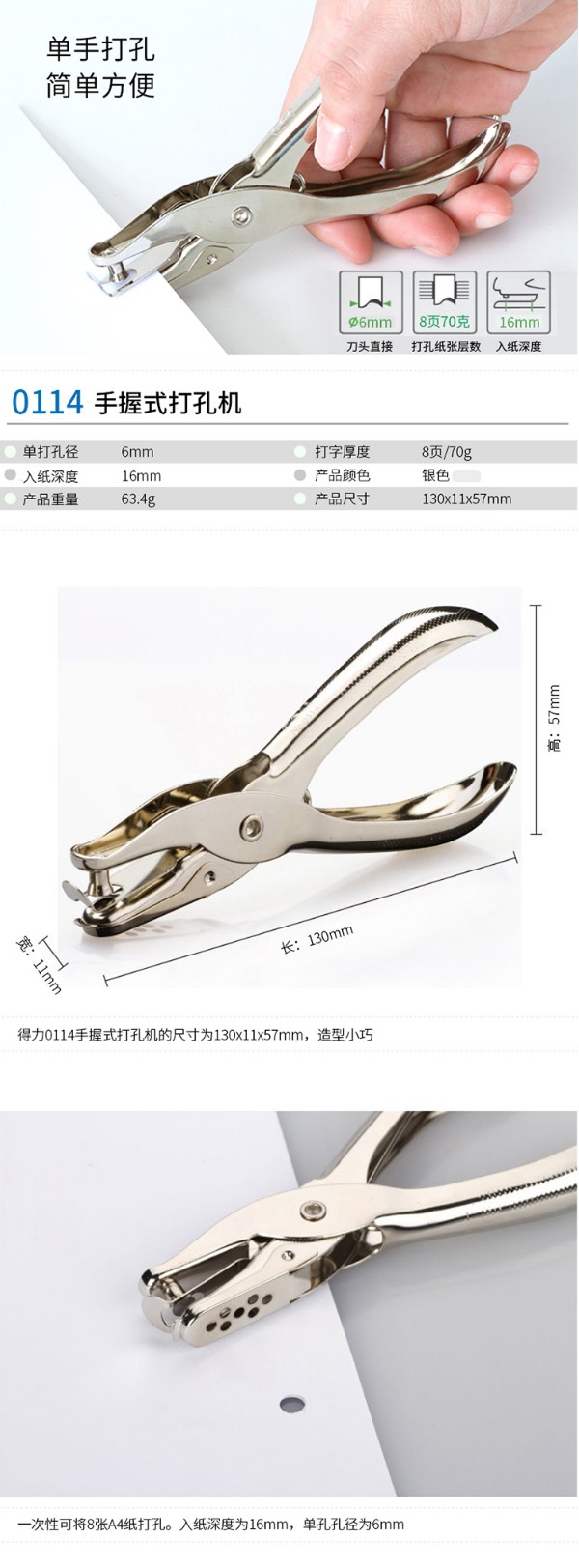 - 商品名称:得力0114手动打孔钳手捏打孔机打洞机器6mm办公手握全金属不锈钢