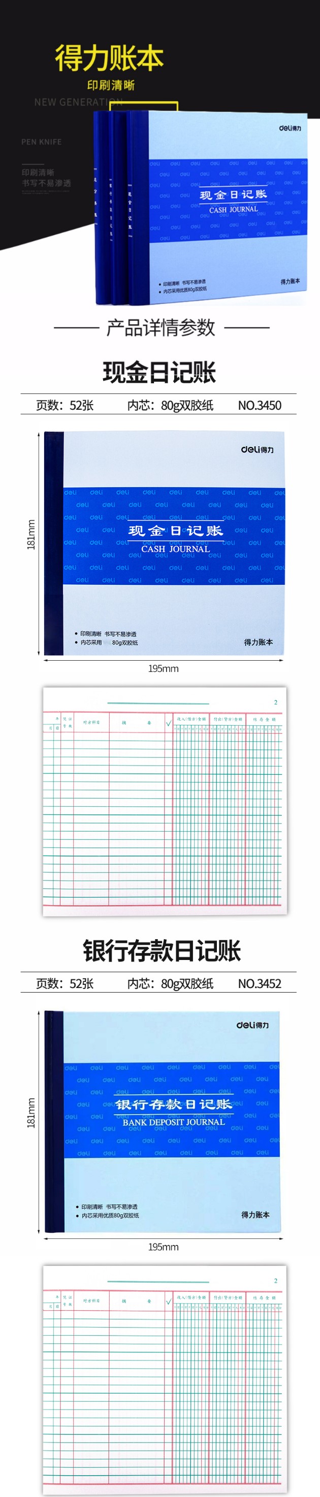 - 商品名称:得力记账本财务现金日记账银行存款日记账总分类账总账会计账簿财务账本办公用品得力3450/3451/3452