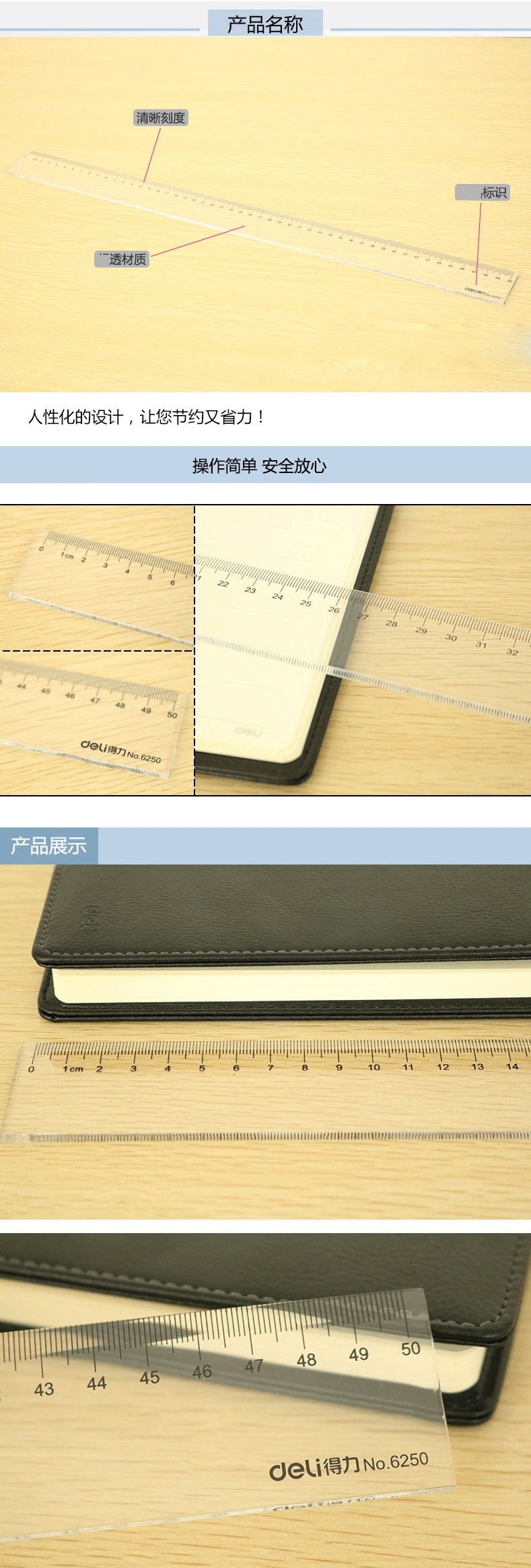 主体 品牌 得力 型号 6250 规格 规格 办公直尺 材质 PS材质