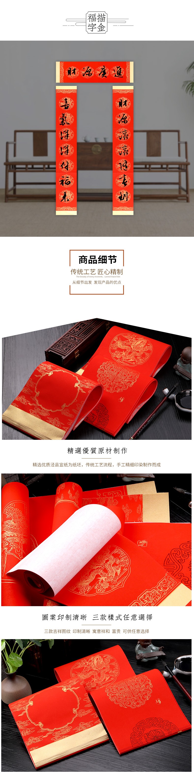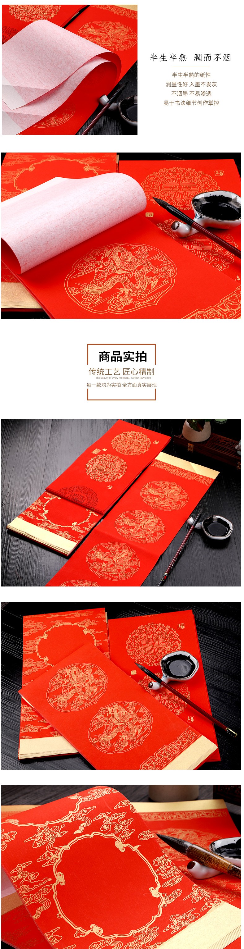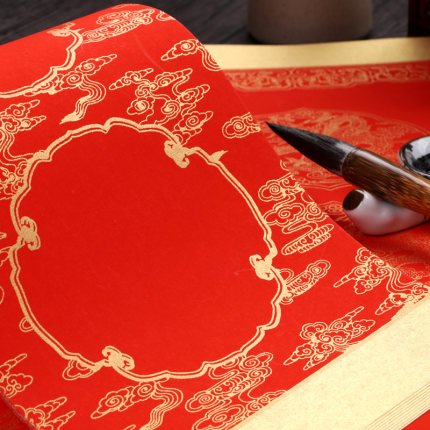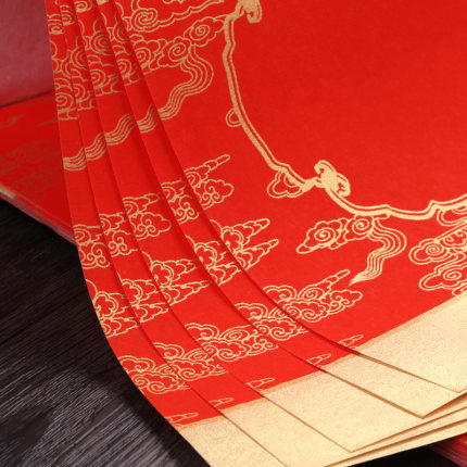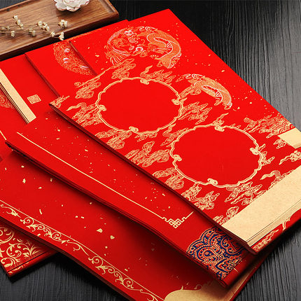 - 商品名称:红蜡纸对联染彩绘春联纸加厚空白手写红纸福字祥云龙纹结婚 对联书法作品纸春联