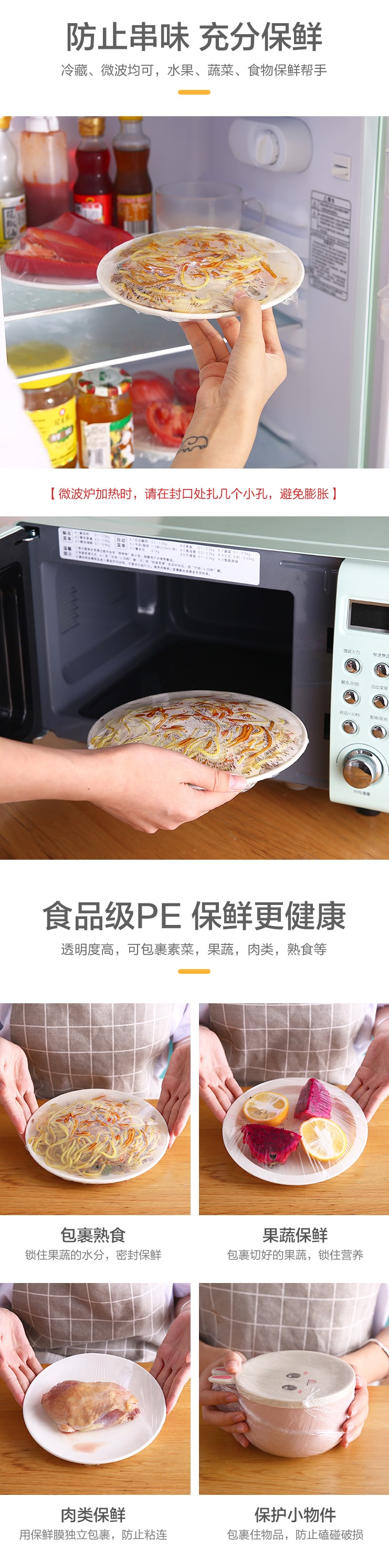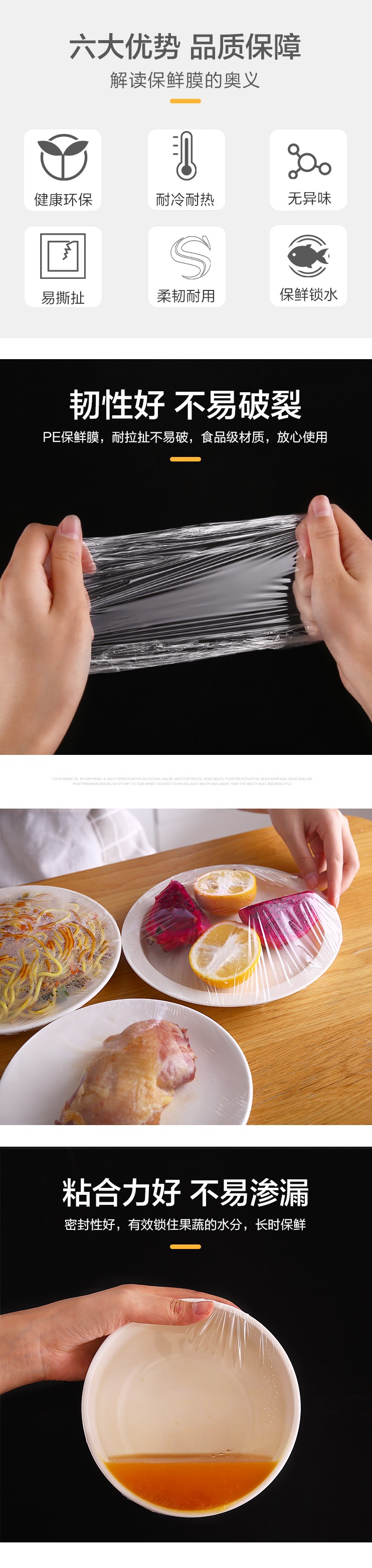 - 商品名称:厨房保鲜膜一次性包装家用冰箱微波炉保鲜膜大卷PE保鲜膜